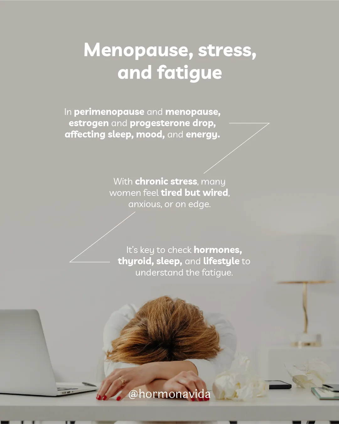 At Hormona Vida, we look at the larger picture. We connect stress, sleep, metabolism, thyroid, gut, and menopausal hormone shifts.
